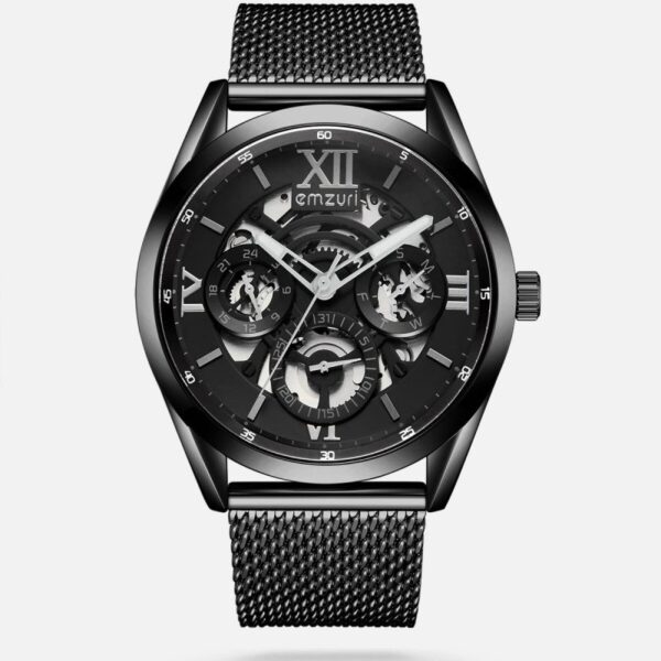 ساعة رجالية بسير شبكي أسود من ايمزوري | EAM001M