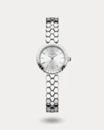 - ساعة نسائية بسير من الستانلس ستيل باللون الفضي.