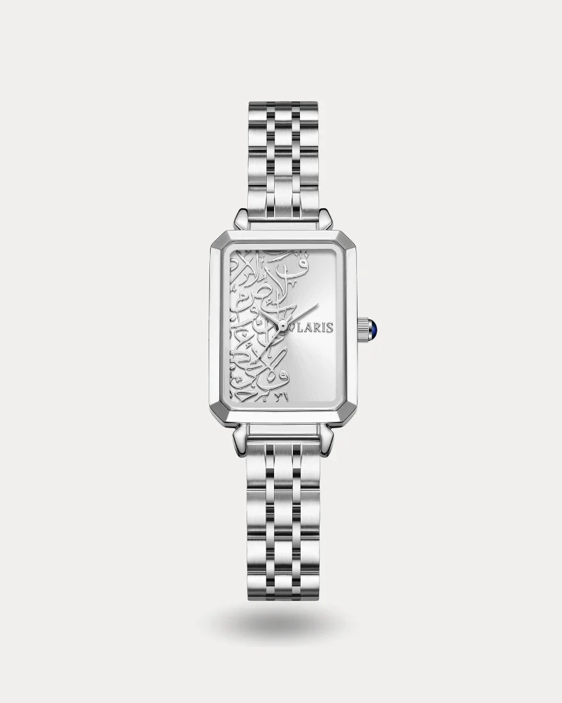 - ساعة مميزة بميناء فضي وبنقوش عربيه