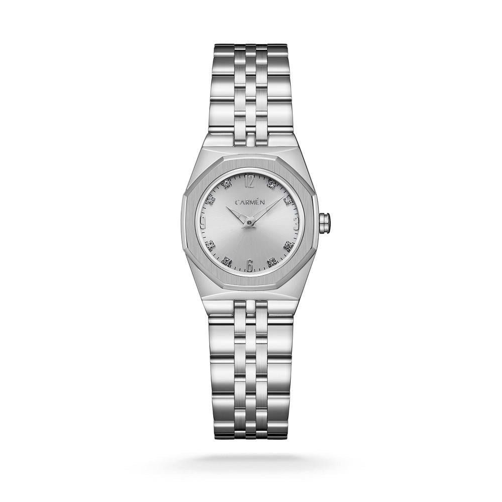 • الميناء: فضي، مرصّع بكريستالات زركون براقة كمؤشرات.