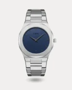 - ساعة رجالية بسير من الستانلس ستيل المقاوم للصدأ والرطوبة باللون الفضي