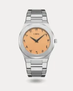 • ساعة رجالية بسير من الستانلس ستيل المقاوم للصدأ والرطوبة باللون البرتقالي