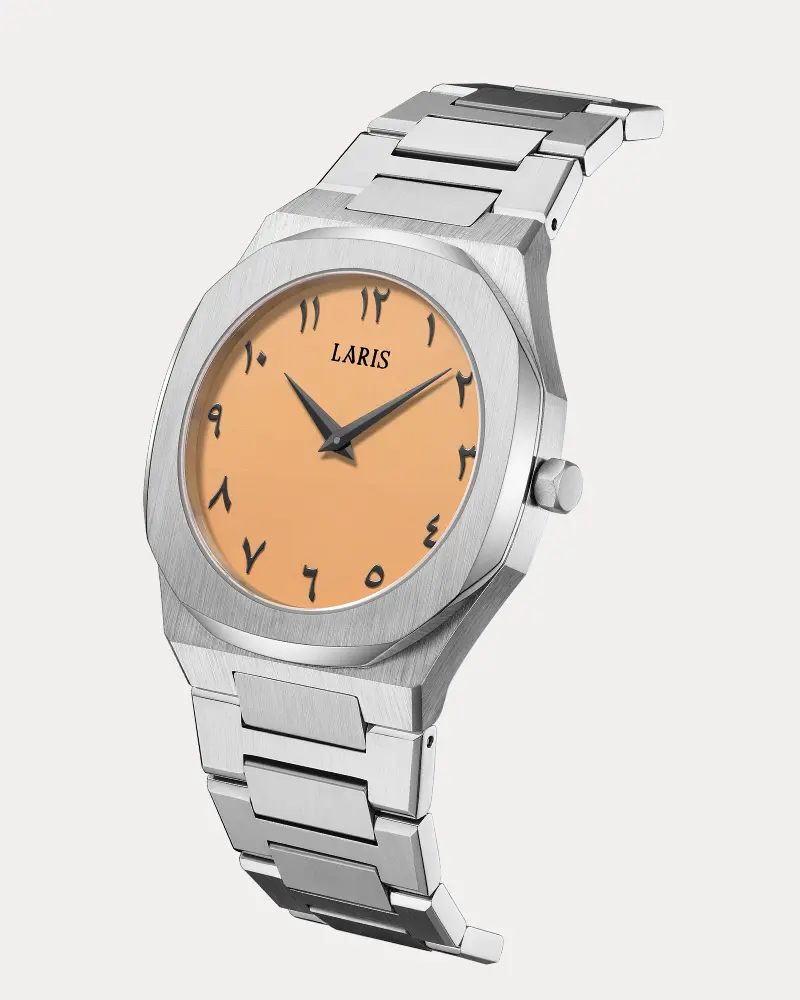 ساعة خالد الرجالية باللون الفضي من لاريس، صُممت هذا الساعة على أيدي افضل المصممين لتكون مميزة على يد من يرتديها، والتي سوف تضيف على يدك من الجمال والأناقة.